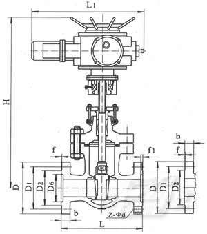 电动法兰闸阀 主要外形尺寸